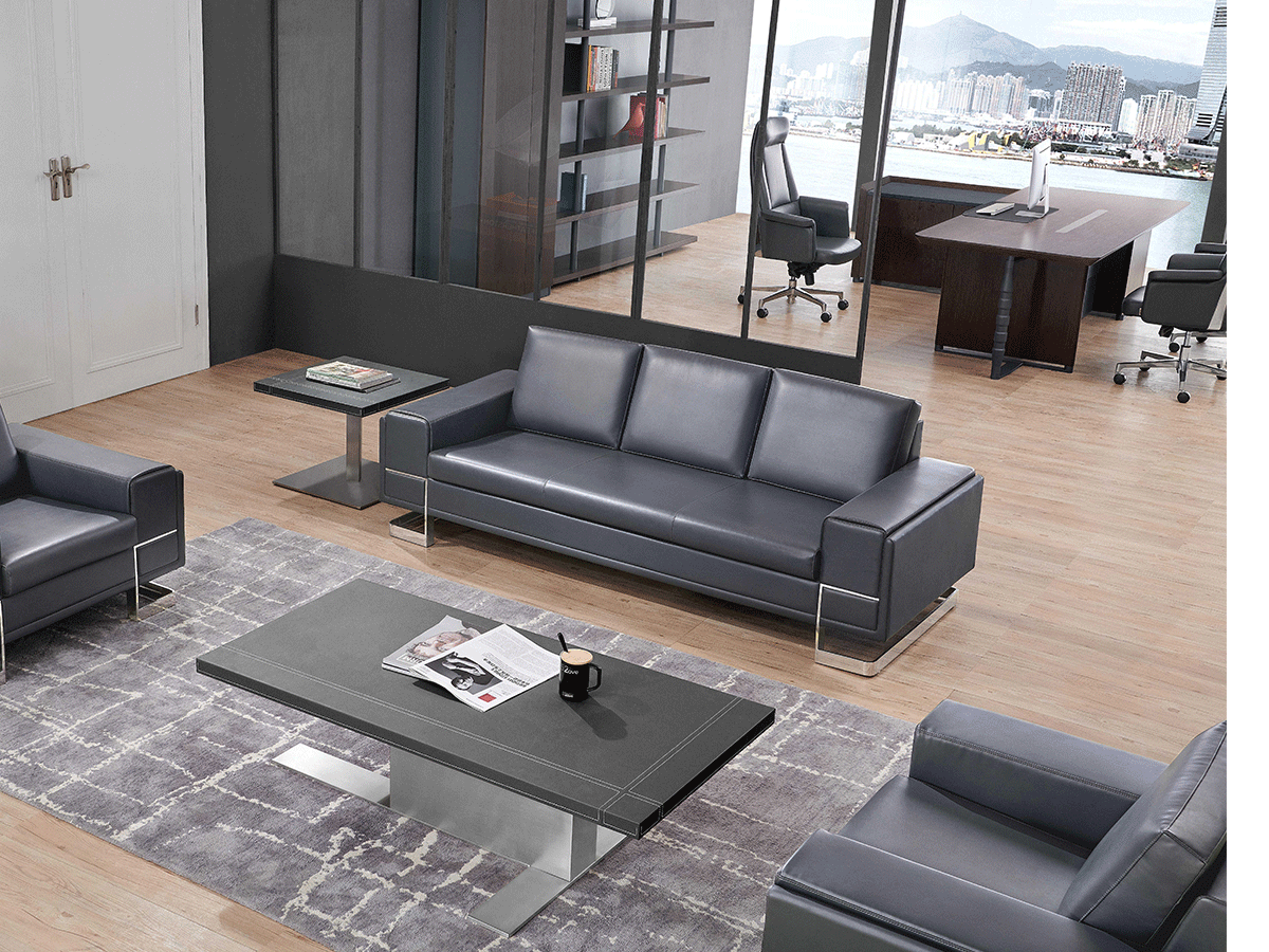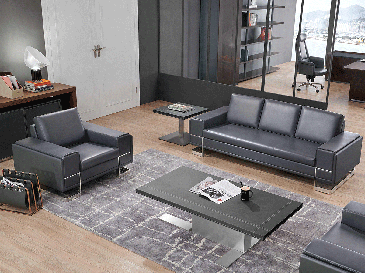 Profundizando en la funcionalidad, nuestro conjunto de muebles de cuero gris contemporáneo eleva los asientos del espacio de trabajo colaborativo a nuevas alturas. Esta variante de sofá de oficina para varias personas, un lujoso tres plazas combinado con un sillón a juego, está tapizado en cuero gris de primera calidad que promete comodidad duradera y elegancia atemporal. Las costuras precisas y las elegantes patas de acero inoxidable no sólo mejoran el atractivo visual sino que también garantizan que la pieza se integre sin esfuerzo en cualquier entorno de oficina, desde firmas financieras hasta instituciones educativas. Como líderes en soluciones de oficina modulares, Siwares adapta estos sofás de oficina de varios asientos para admitir diseños flexibles, lo que permite una fácil reconfiguración a medida que evoluciona su espacio de trabajo. La mesa de centro que la acompaña, con sus costuras sin costuras y su resistente base metálica, además de una elegante lámpara de mesa para iluminación ambiental, convierte cualquier rincón en un santuario refinado. Nuestro enfoque centrado en el cliente, que incluye soporte posventa rápido, significa que su inversión en muebles de salón de oficina sigue siendo un activo confiable durante años.