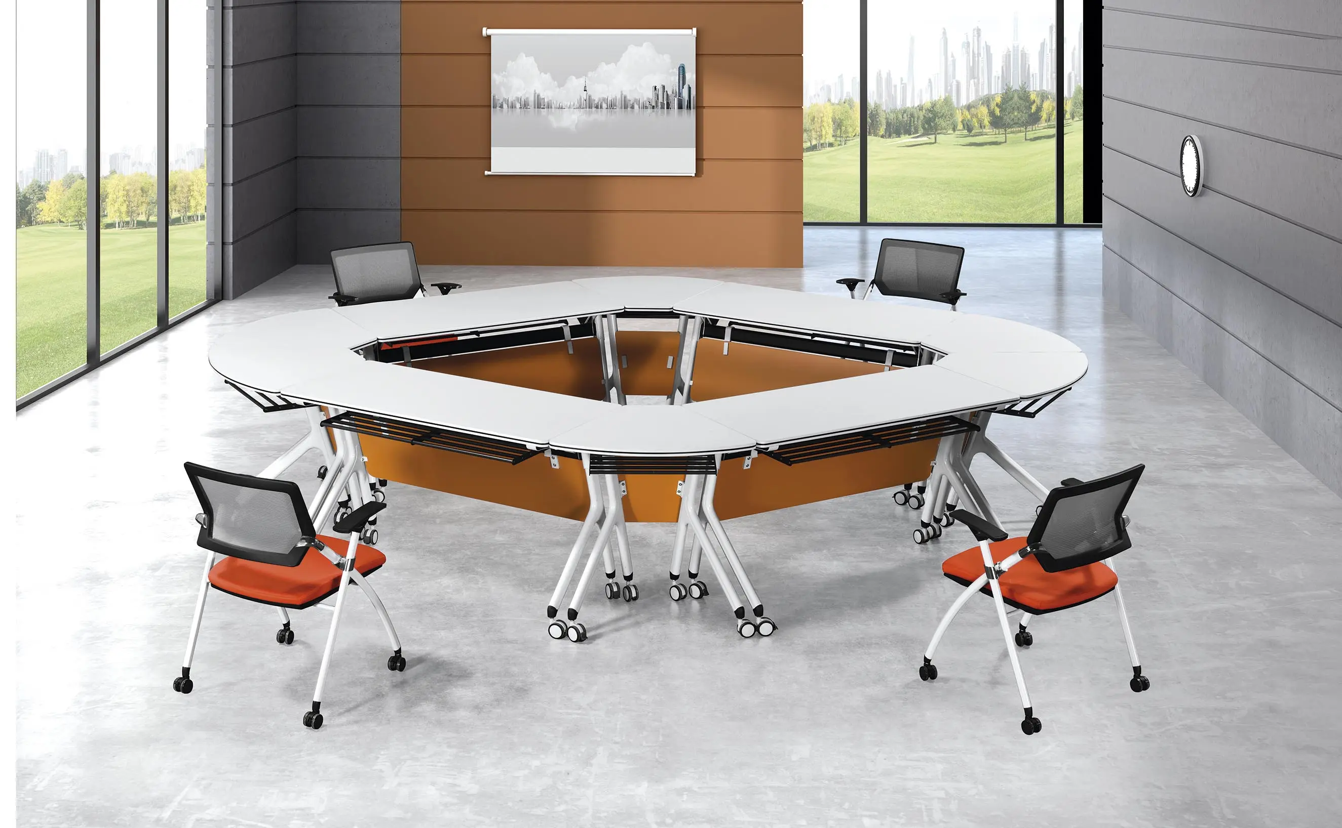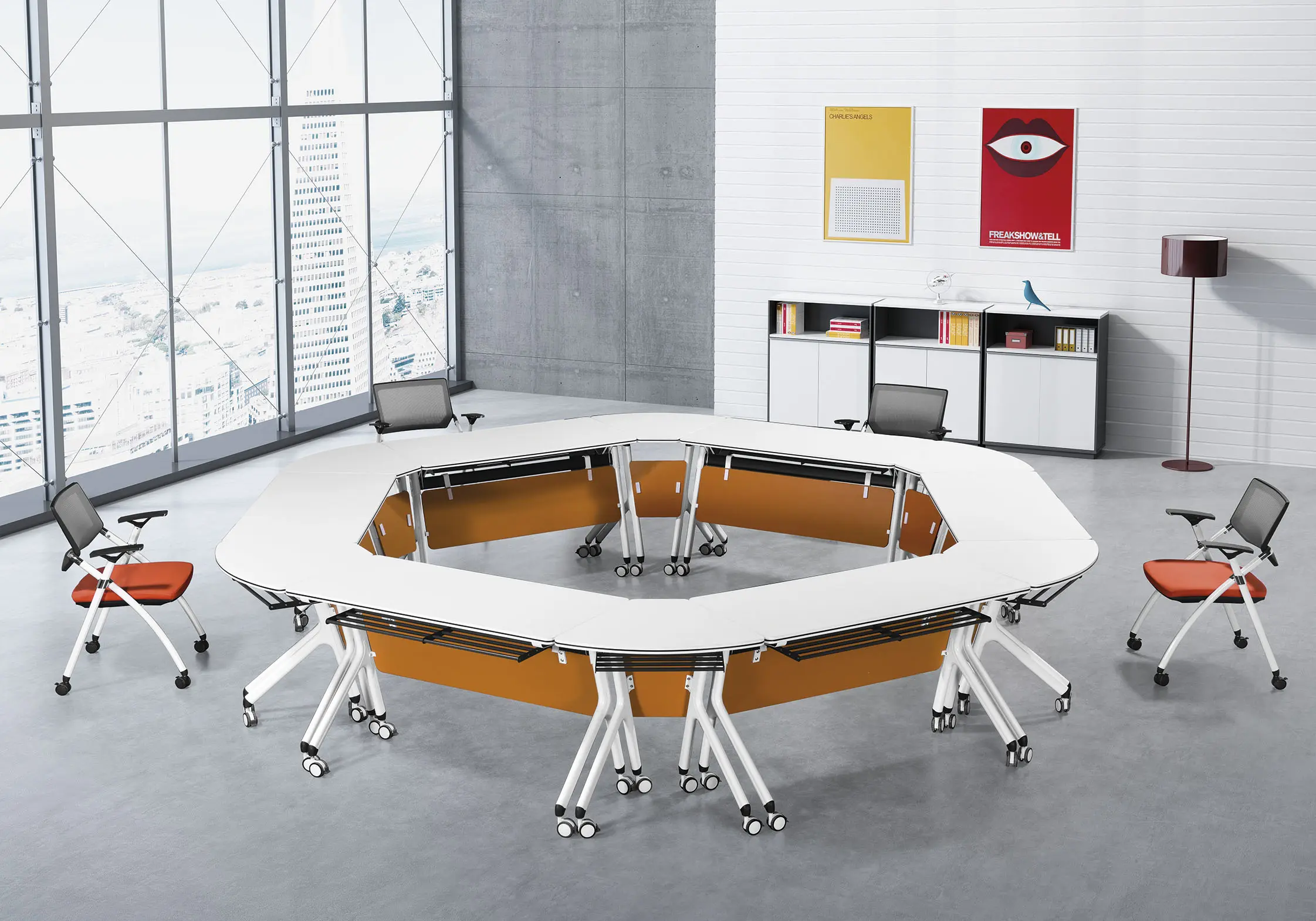 La portabilité est essentielle pour les formateurs nomades, et notre table de formation portable répond parfaitement à ce besoin. Légère et stable, elle se plie de façon compacte pour un transport aisé d'un lieu à l'autre, idéale pour les ateliers hors site ou les équipes en déplacement. La table de formation portable bénéficie de la même qualité de fabrication que nos modèles fixes, avec des cadres renforcés qui empêchent tout vacillement pendant l'utilisation. Les lignes de production avancées de Siwares nous permettent de livrer rapidement ces solutions portables, facilitant ainsi vos formations où qu'elles se déroulent.