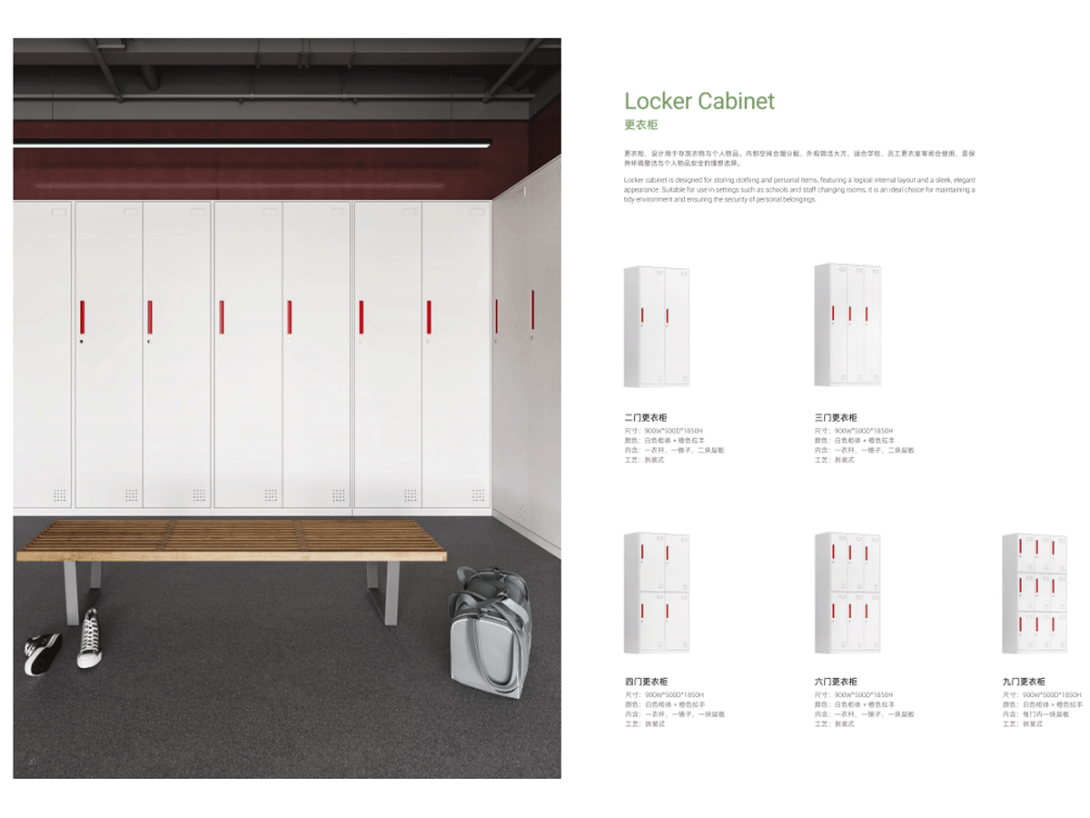 In high-demand settings like universities or corporate gyms, the steel storage cabinet proves its worth with multiple compartments for shared use. Each locker-style section, inspired by our multi-compartment storage lockers, offers individual locks and ample space for backpacks, files, or personal effects. The red accents on doors provide a vibrant contrast against the white finish, injecting energy into otherwise neutral spaces. Our commitment to sustainability means every steel wardrobe uses recyclable materials, reducing environmental impact without sacrificing quality. With certifications for safety and durability, you can trust Siwares to deliver excellence.