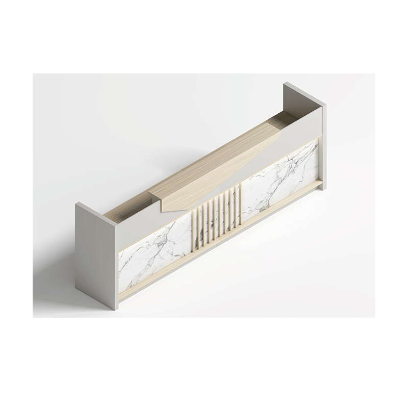 For those seeking a contemporary reception desk, Siwares delivers pieces that fuse timeless elegance with cutting-edge trends. Our contemporary reception desk lineup features clean lines, minimalist aesthetics, and artistic vertical slats that add visual interest without clutter. The marble finish on the front panels exudes luxury, while the wooden elements introduce warmth and texture, making it suitable for modern hallways, living rooms, or dedicated office fronts. This design philosophy aligns with our mission to foster creativity and wellness, using sustainable materials that withstand daily use. A contemporary reception desk from Siwares isn't just furniture—it's an investment in brand image, with scalability ensured by our multiple production lines. Clients in diverse sectors rave about how these desks enhance professionalism, supported by our robust logistics for seamless installation.