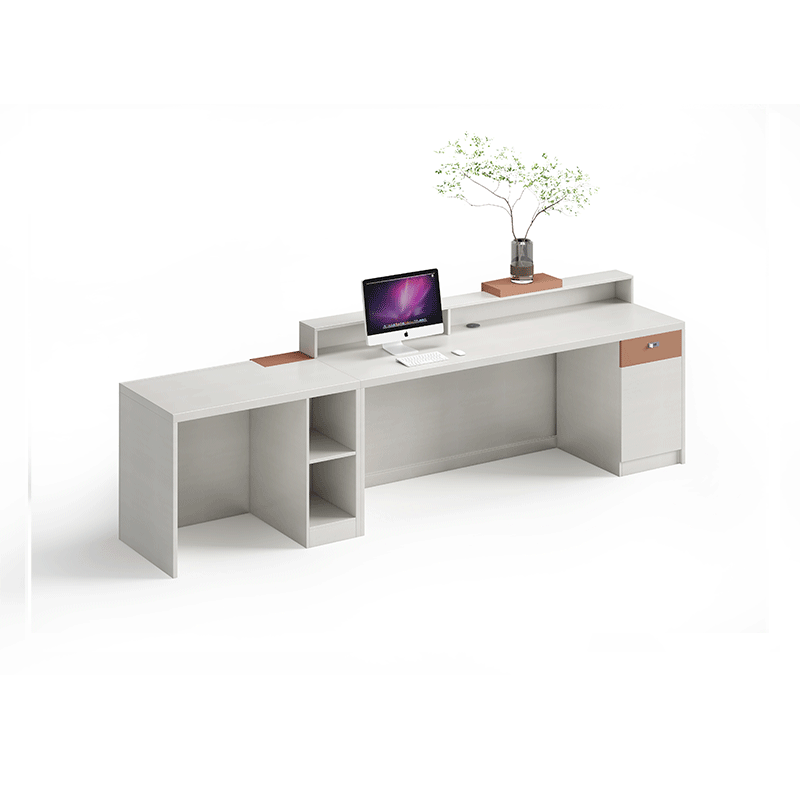 Glass reception desks bring a touch of contemporary elegance, and our models incorporate tempered glass surfaces for a clean, reflective look that's both durable and easy to maintain. These small reception desks feature pristine white finishes accented by warm brown or subtle earthy pink panels, adding depth without overwhelming smaller spaces. Crafted with ergonomic principles in mind, they foster creativity and wellness, as highlighted in our customer-centric approach. The integrated display shelves and storage options provide ample room for essentials, while the subtle branding nods to Siwares' dedication to innovation. Serving sectors like finance, government, and education, our glass reception desks are tailored to meet diverse needs, promoting productivity in every interaction.